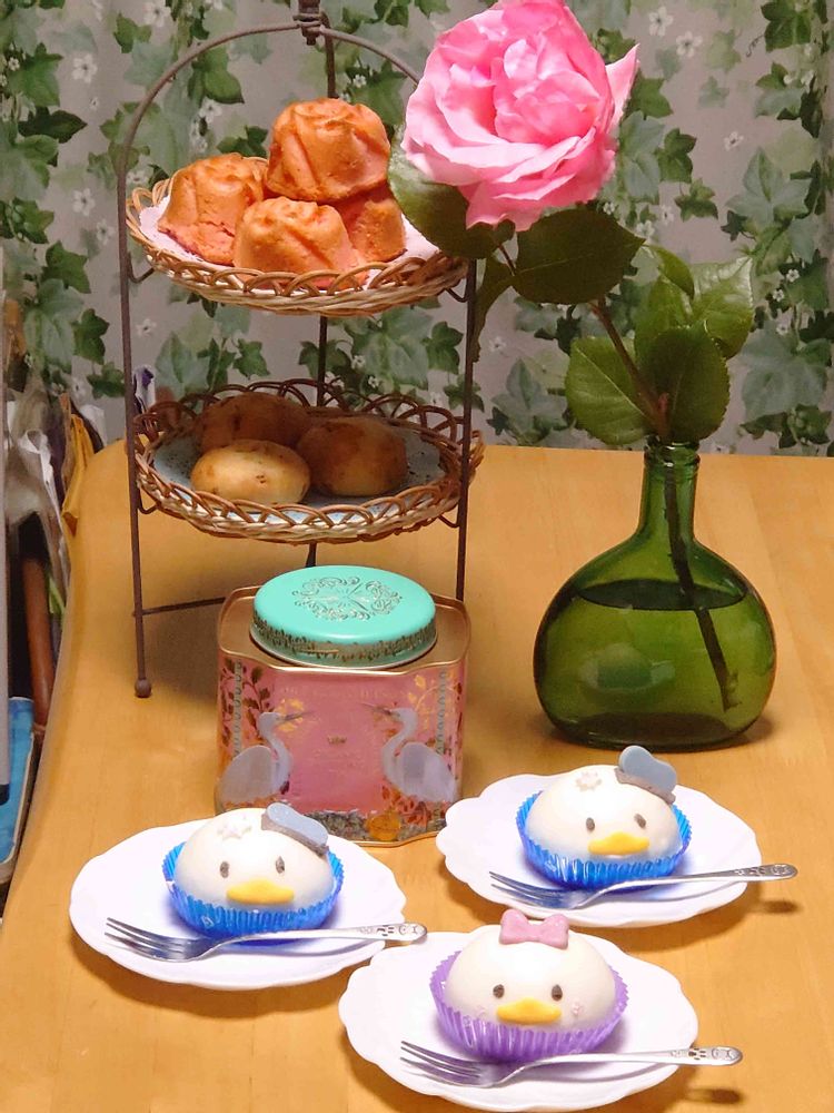 子どもたち用にローソンで可愛いいドナルドとデージーのスイーツを買っておいたのだけど、私が作った薔薇のマドレーヌや苺のスコーンも食べてくれて、お兄ちゃんは熱い紅茶も飲めるようになったので嬉しい(*^^*)