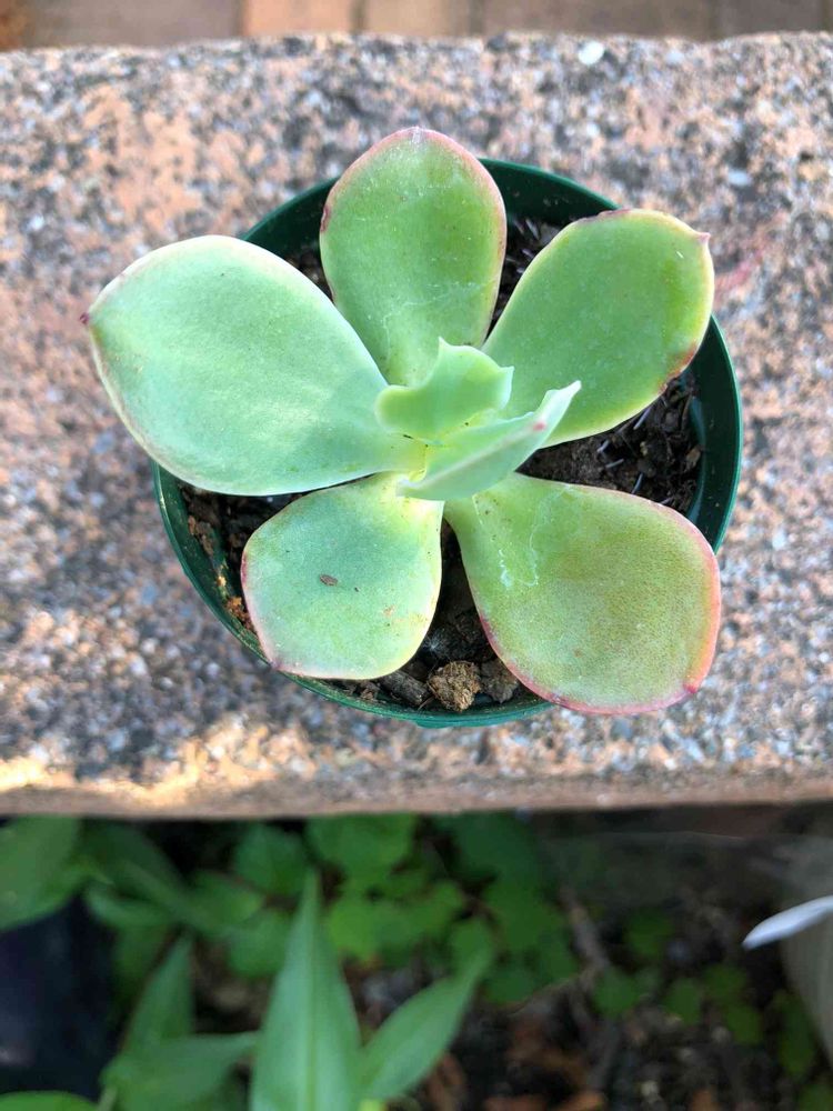 「花いちもんめ」のベゴニア園で頂いてきた多肉ちゃん。わりと大型なエケベリアっぽいですが、あなたはだーれ??(笑)