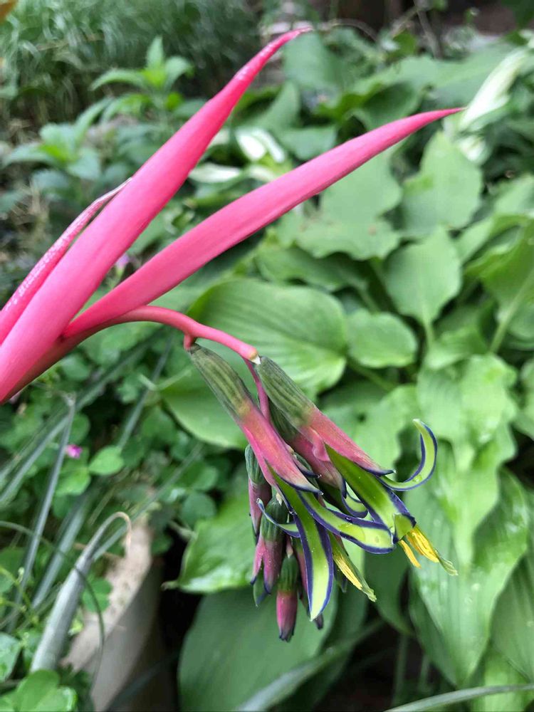 ヨウラクツツアナナス(瓔珞筒アナナス)が今庭で30本程開花中です✨✨✨