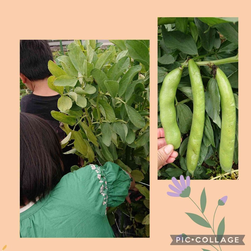 雨の合間で、空豆の収穫を手伝ってもらいました☺️