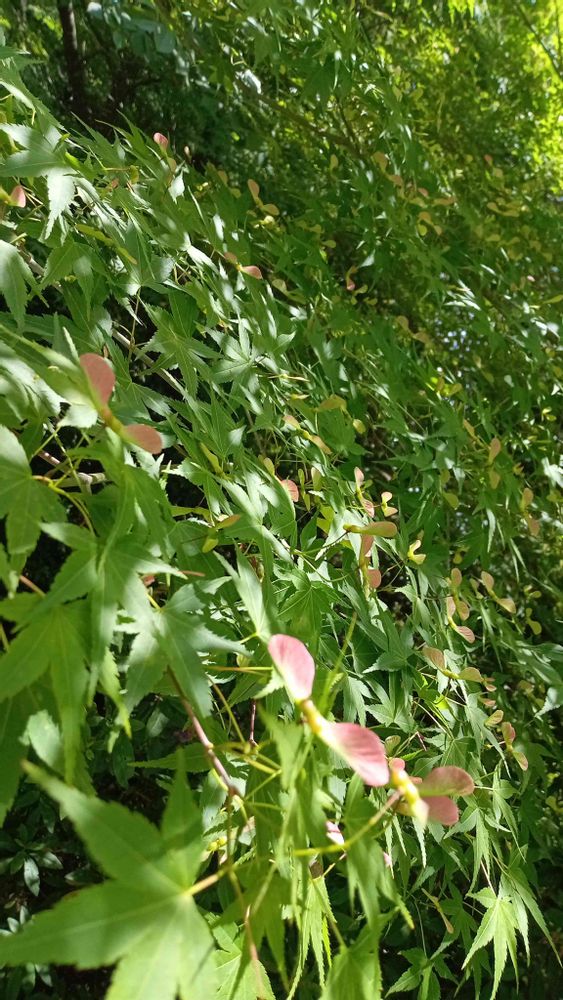 花は下に咲くのに 種は葉の上に出てくる 不思議な植物ですね 紅葉の若葉の上にほんのり赤く色づく❤️🎵