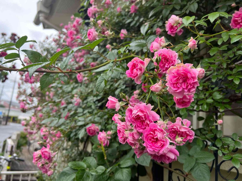 毎年シュートや枝が伸びすぎて大変なので今年は肥料を控えたので葉もお花も少なめ…このくらいの方が管理は楽かもですね😅