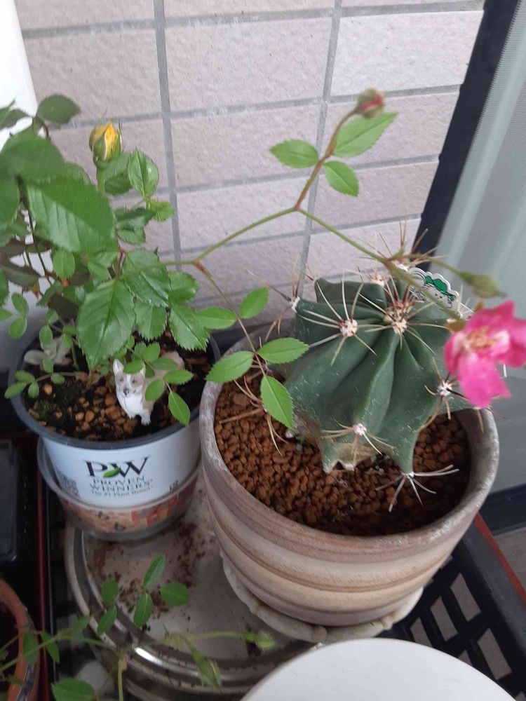 バルコニー/ベランダ,ミニ薔薇ほほえみ,植木鉢の花の投稿画像