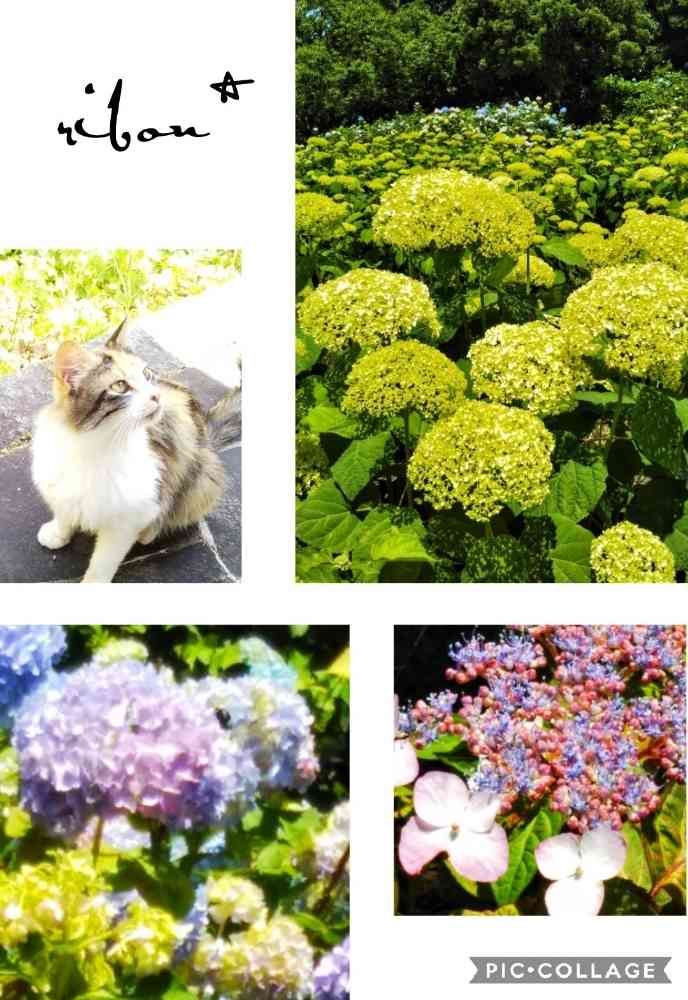 紫陽花って見てると心が落ち着きます☺️猫ちゃんも紫陽花を見に来たのかな😊💕✨