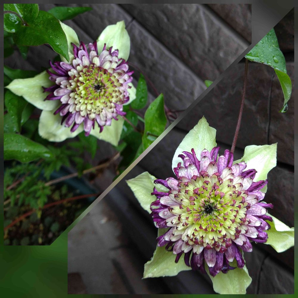 雨の中、クレマチス・ビエネッタが咲きました♪