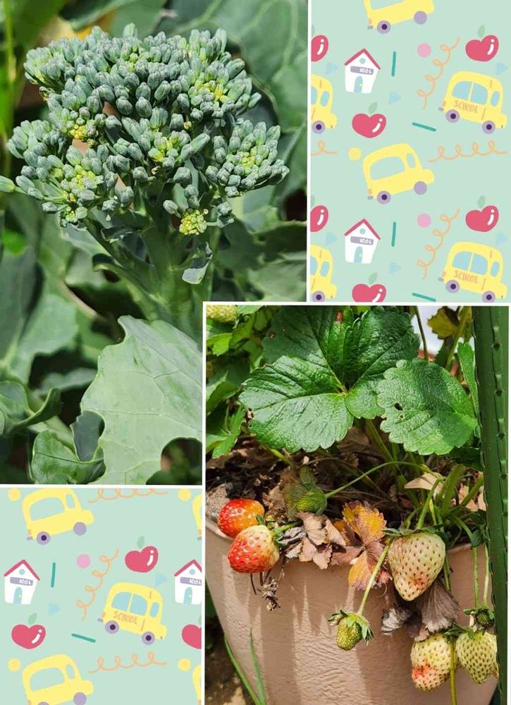私の小さな畑からスティックブロッコリー🥦とイチゴ🍓です