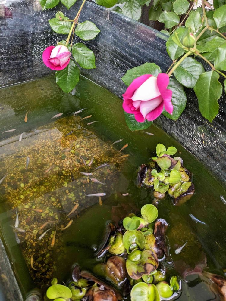 そっと見ていたら…🌹とメダカの会話を耳にしちった