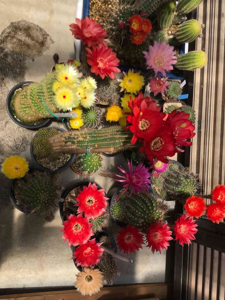 今日は、雨☂️だと思っていたのですが朝から晴天でサボテンが一斉に満開になりました。