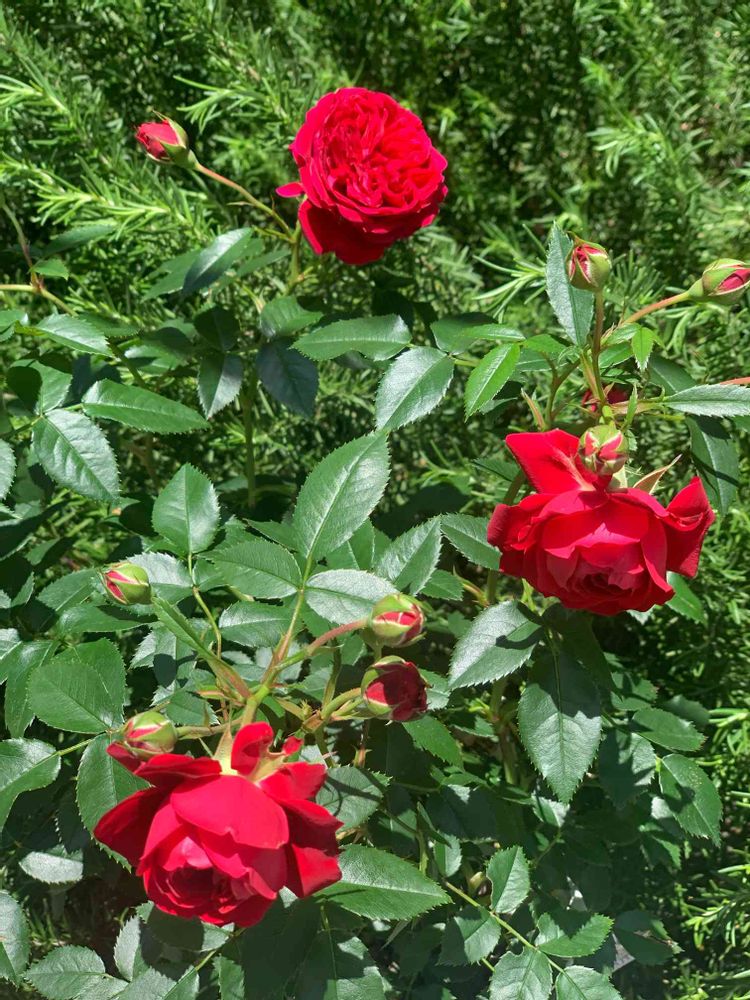 【トゥルーブルームレッドキャプテン】赤い小ぶりな薔薇🌹緑の葉との対比がキレイ🌿✨♪(´ε` )
