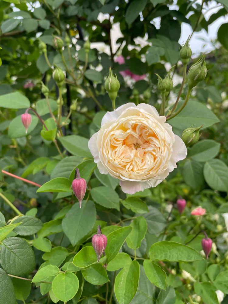 バラのつぼみもクレマチスのつぼみを期待していいよ❗️と言ってくれているようです😊