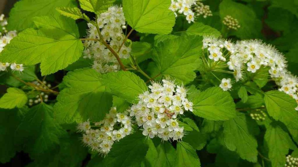 小手鞠より、雄しべの蕊が長く、葉っぱも🌱広い葉っぱです。
