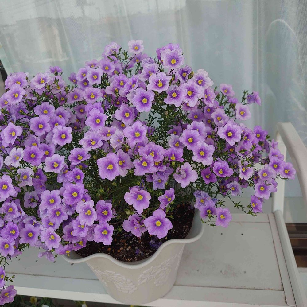 ラベンダーブルーの花弁にブルーのリンクと中央が黄色でコントラストが可愛いのよ〜💜