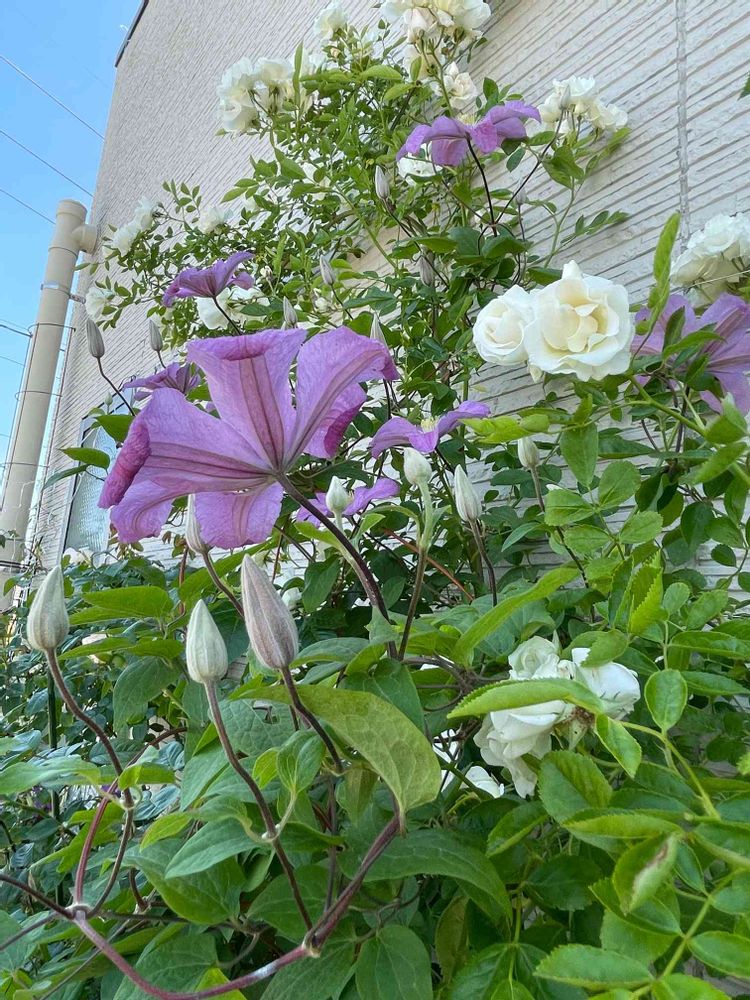 つるサマースノーとクレマチス コンテス ド ボジャール(お顔は見えません)😅