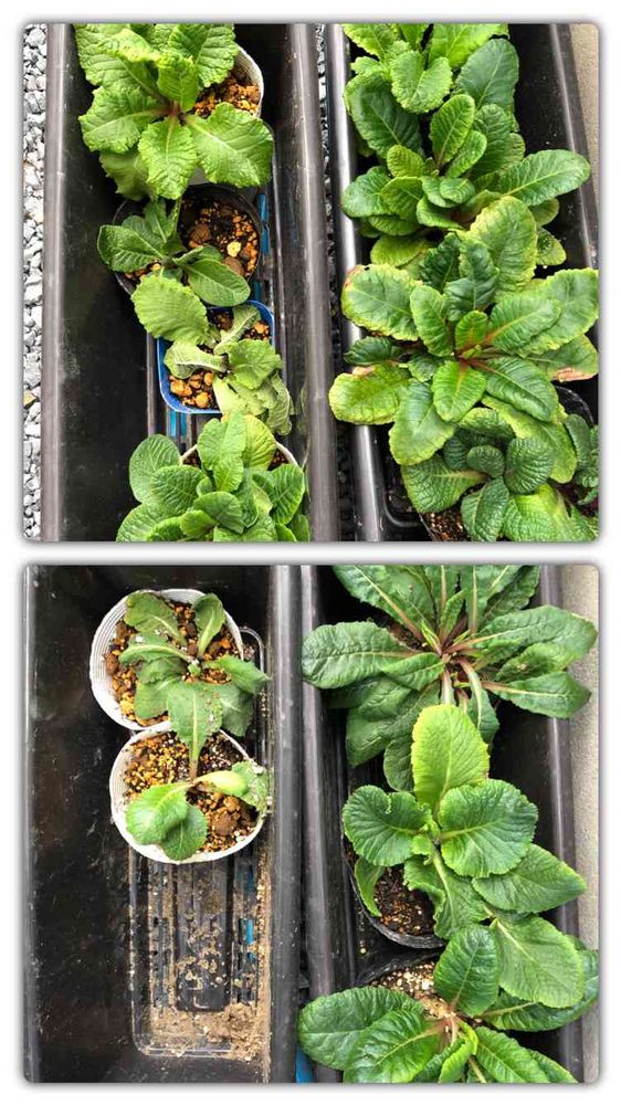 おお、見事なもさもさ!これは越せますよ!ひとつの目安として、中心の葉がシナシナでなければ大丈夫です。分けた子たちはちょっと元気ないですね、でも瀕死でもないのでしばらく様子を見ましょう。お礼肥は気温が28度くらいになる頃で切れるものがいいですよ。