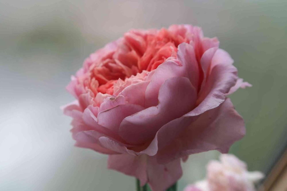 目の前の🌹を見ると。。実物通りに📸撮れてないですーこの花の下の枝には頑張ってもらって😆