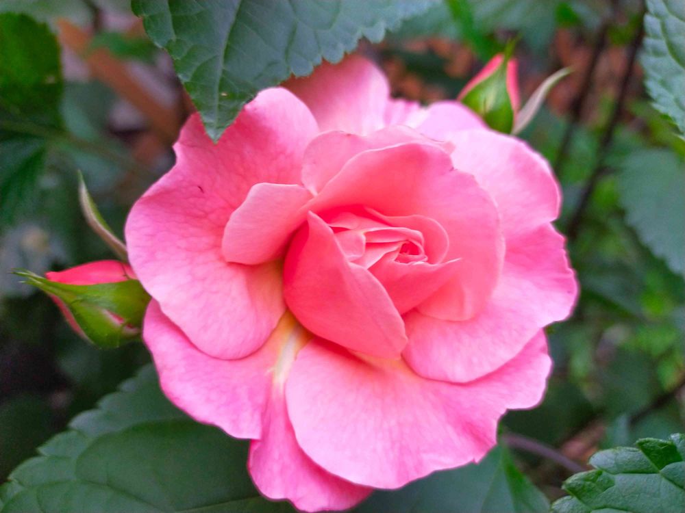 もう少し開くとアプリコット色が覗くのではないかと思いますが、今日はただのピンクのバラですね。