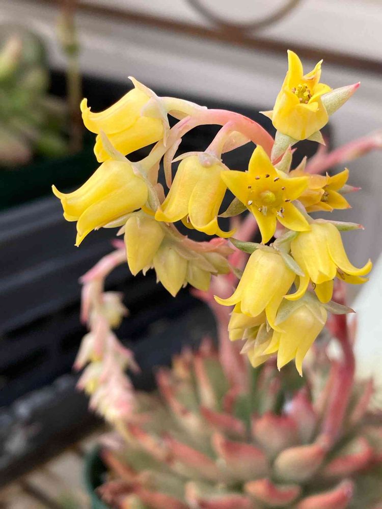 この黄色の花を咲かせるのはエケベリアの仲間😊