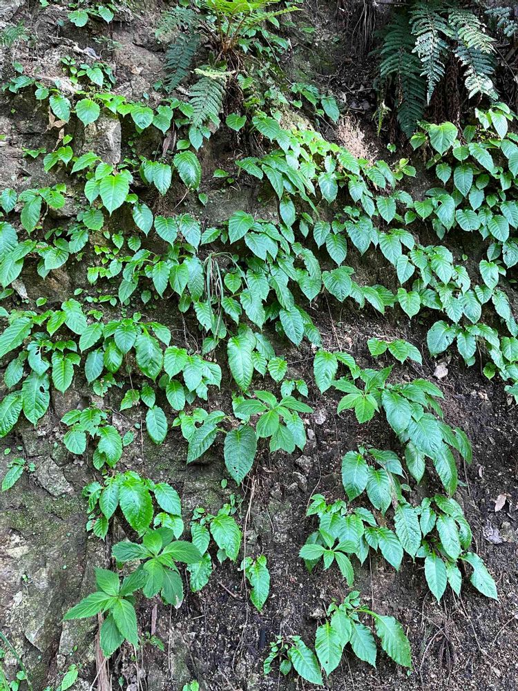 林道の斜面にイワタバコの葉🍃