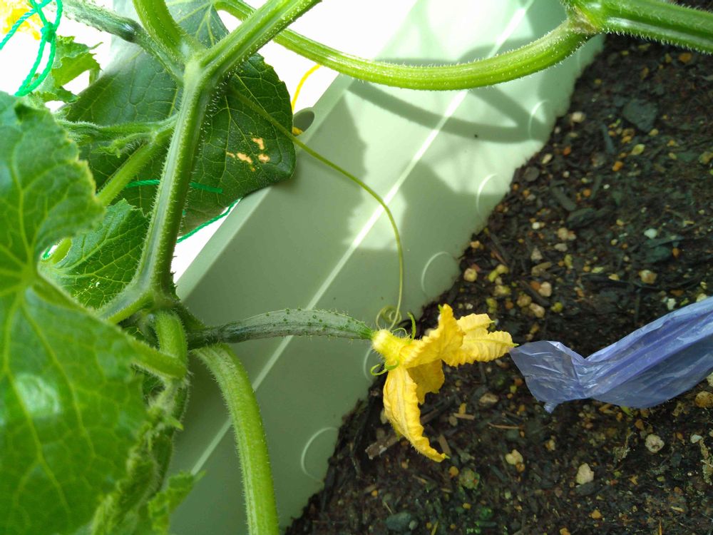 植え付けして1ヶ月で花が咲きました🎵きゅうりは雄花と雌花があるんですね。育てて初めて知りました😲写真は雌花です。