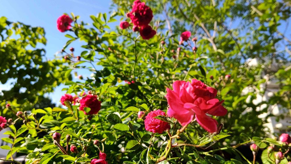 晴天に赤い薔薇🌹なんだけど、ちょっとボケた💦