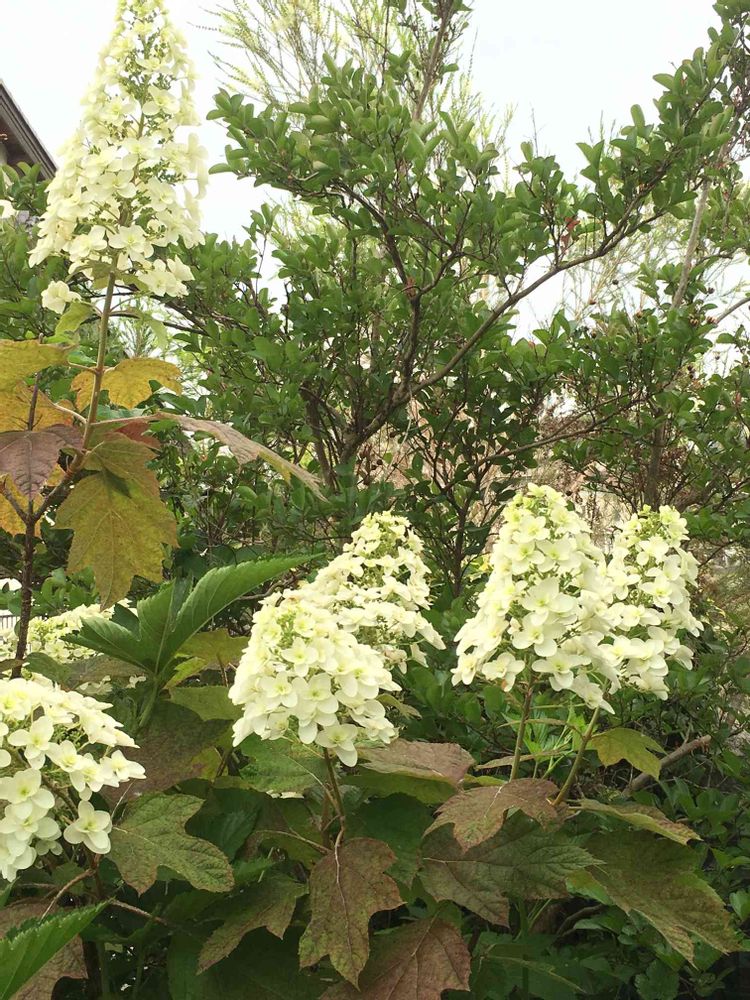 カシワバアジサイもあったのね💕 ほんと元気いっぱい♪♪ miyuガーデン お花💠いっぱい 緑モリモリ~💚 紫陽花の後ろの緑の木はなんだろー☺