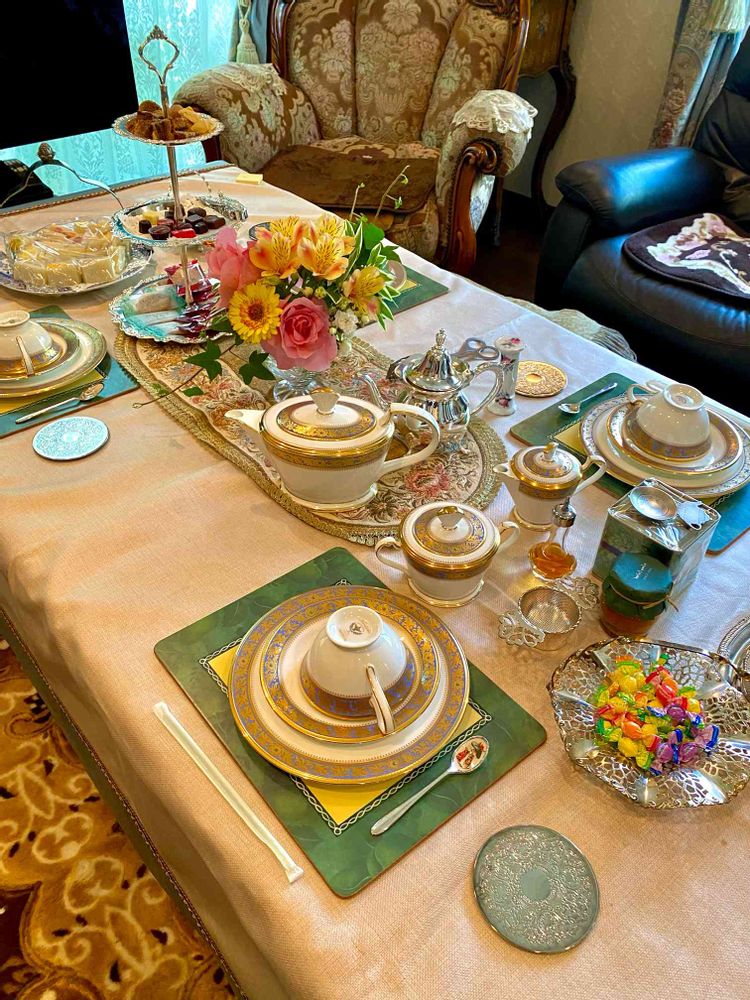 今日から毎年恒例の「バラのお茶会」スタート!バラを愛でながら、そして私達も癒されながらのアフタヌーンティータイム。
