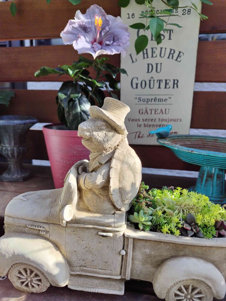 トラック?の荷台に穴が開いてないので間に合わせにそこら辺のセダムを詰め込んで📷