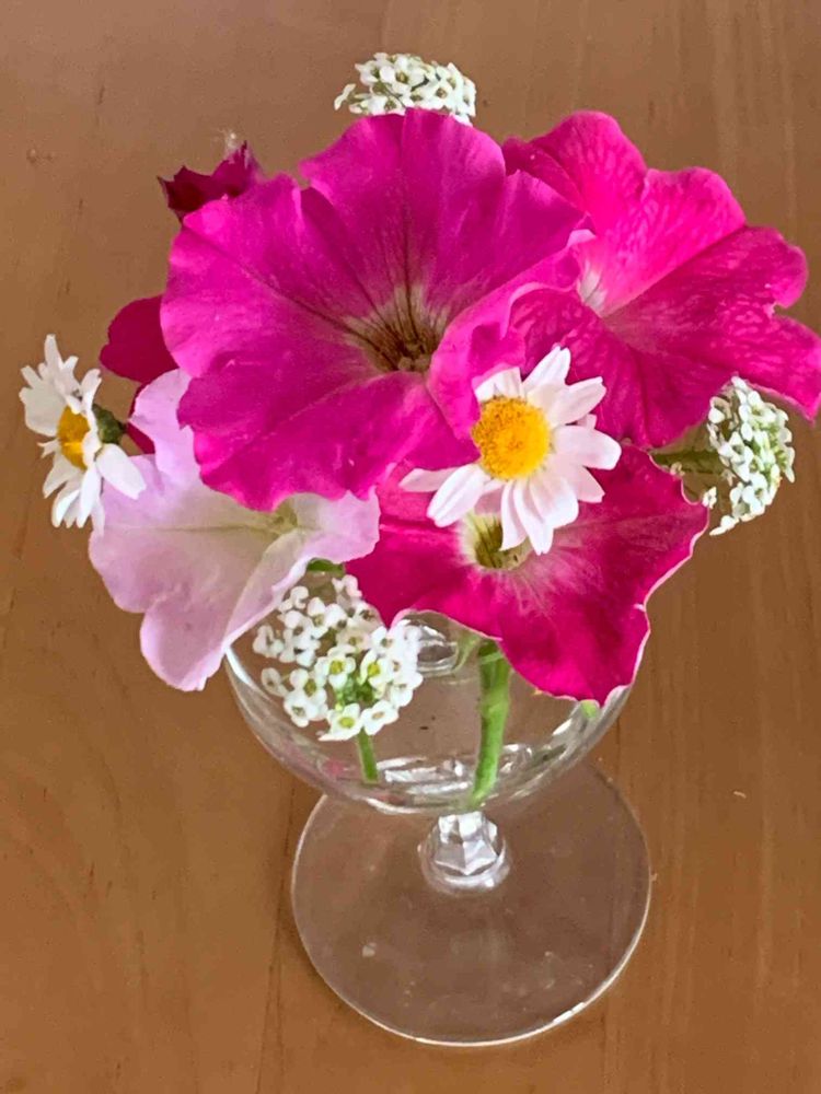 摘心したお花をワイングラスに飾ってみました。結構可愛いくて華やか💕
