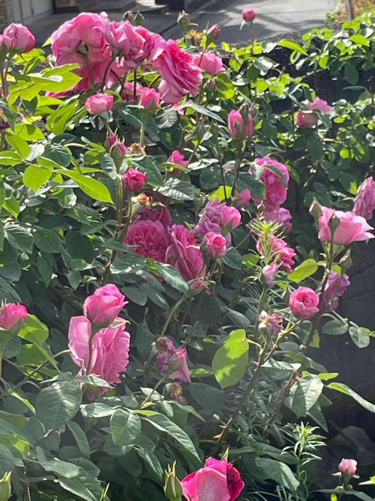 ガートルートジェキルが満開です。今年は誘引がうまくいかなくて枝が近くごちゃごちゃに咲いてしまいました😅
