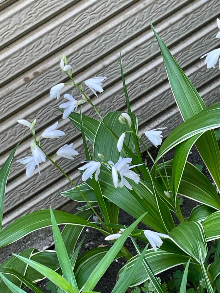 亡きおじいちゃんが植えた、斑入りのシラン、涼しげな白い花です🥰
