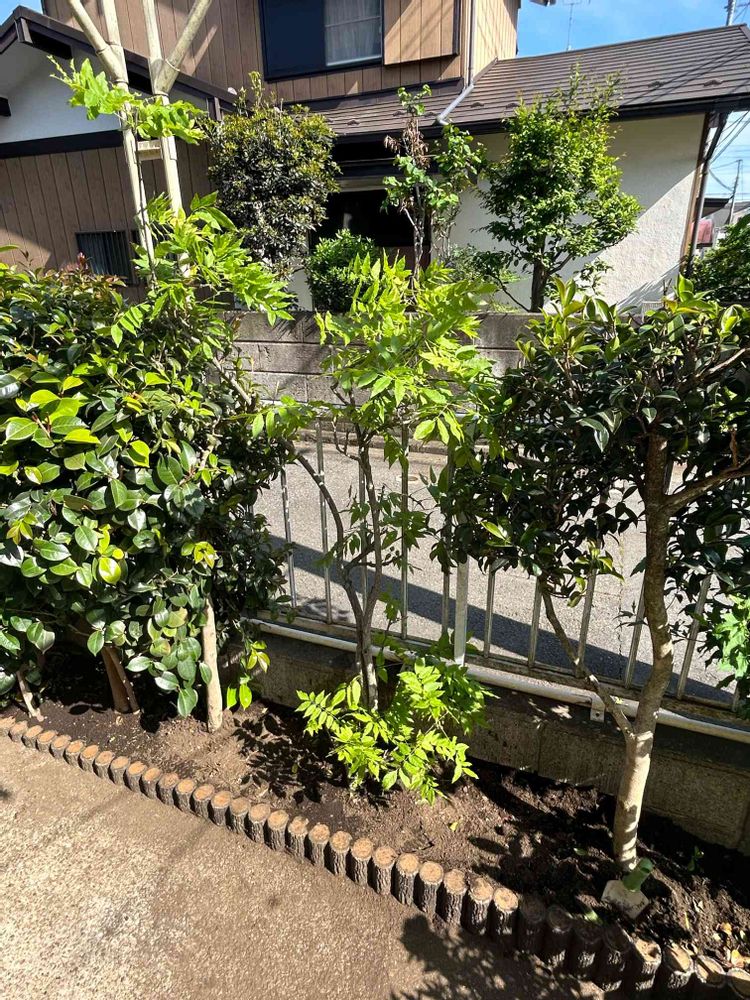 ぶどうが枯れてしまったので、跡地に白い野田藤を植えました。鉢も考えましたが置くスペースが無くて庭に植えたしだいです。