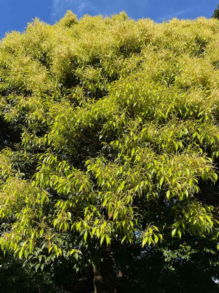実家のクスノキ、ものすごく大きいんだけどお花が咲いてた💛