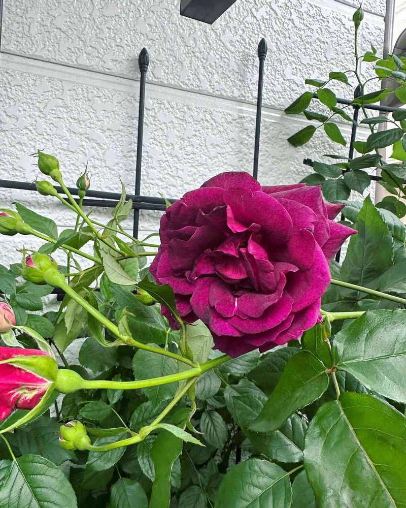 これ薫乃さんの真夜ですよ〜。真夜、去年不調だったので鉢を小さくしてベランダにあげました。シュートが出てきて一安心です。