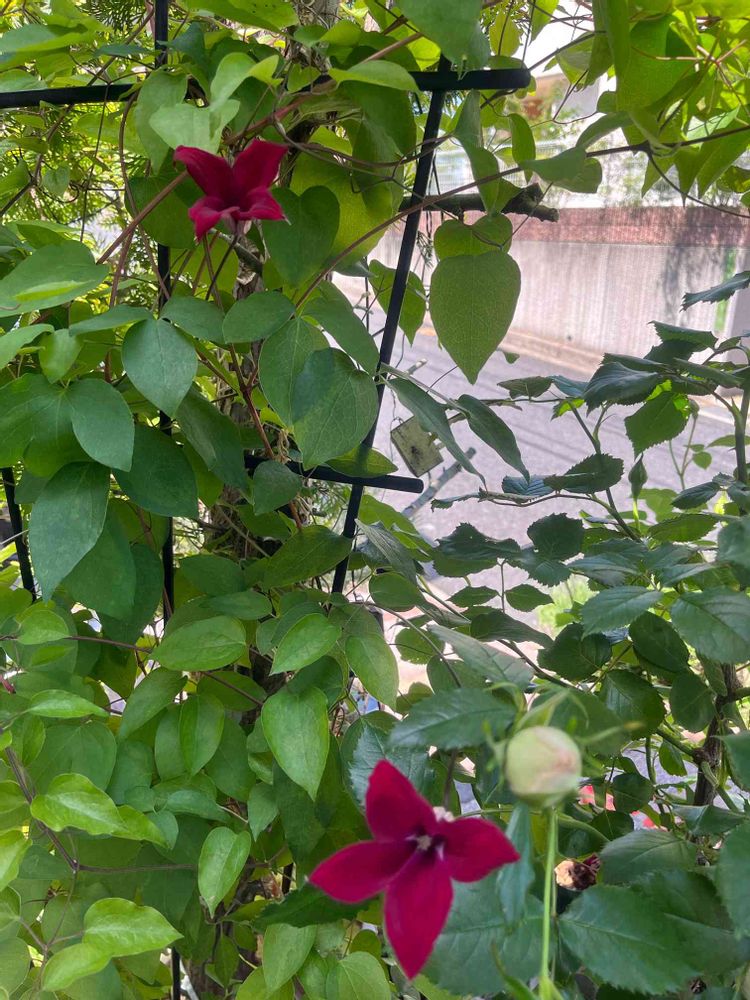 クレマチス グレイブタイビューティーやっと咲いた。でも何故か思った位置で咲いてくれない件(;_;)