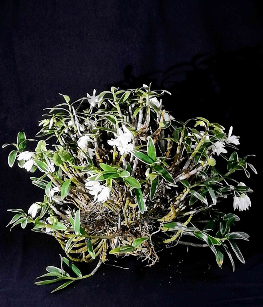 黒を背景にすると、白い蘭が浮かび上がって、幻想的に見えますね。モデルさんもなんだかウキウキしているように見えます。
