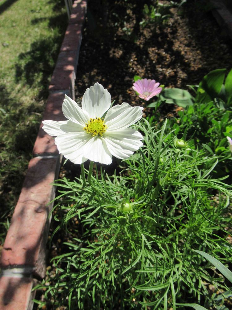 こぼれ種から花壇にコスモスが咲いてきました。せっかちなコスモス~♬♪😊