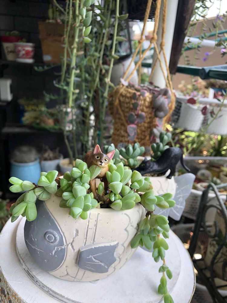 大きなお魚🐟さんの鉢に乗っかってるネコ(ΦωΦ)ちゃん、チャレンジャーじゃね~(笑)🤣🤣🤣