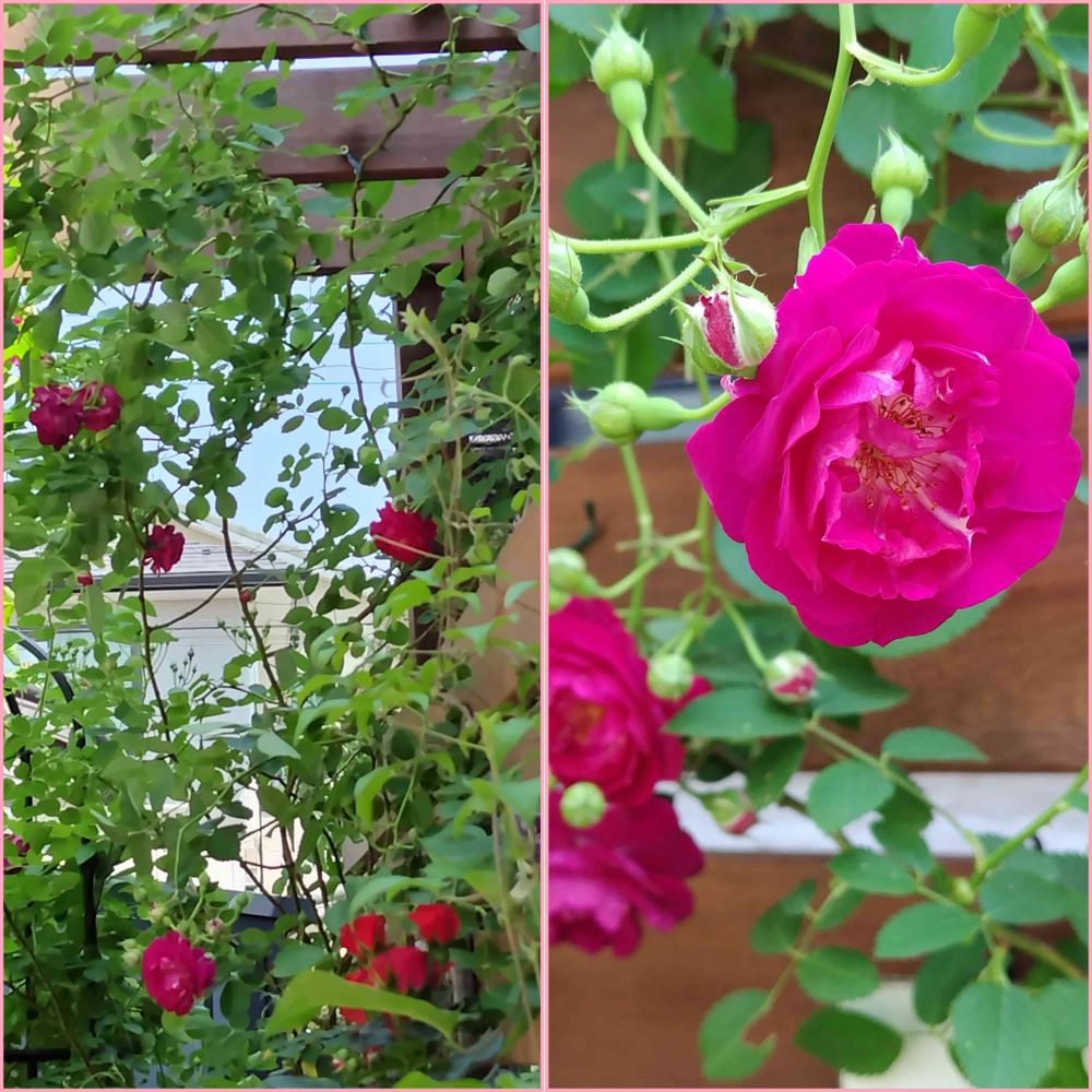 昨年作ってもらった作業台付きのパーゴラに這わせたアイヴァンフォー🌹