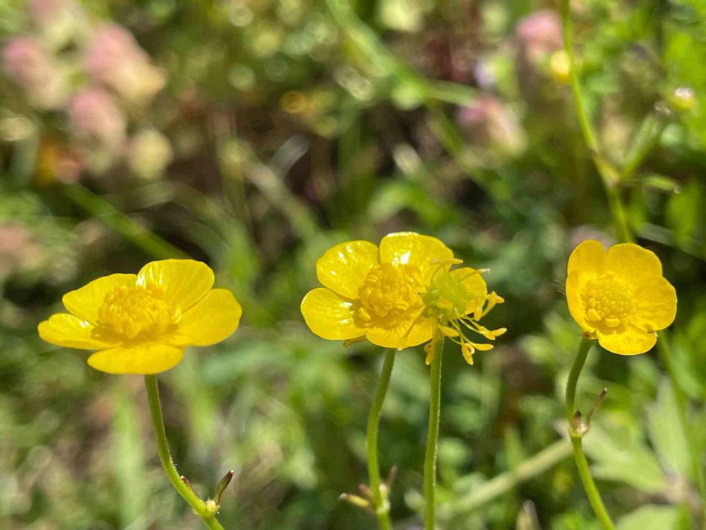 ウマノアシガタです。キンポウゲといえばミヤマキンポウゲ、ラナンキュラスといえば花壇でよく見る八重咲きの花を最初に見たのでそこでフリーズしてます(笑)