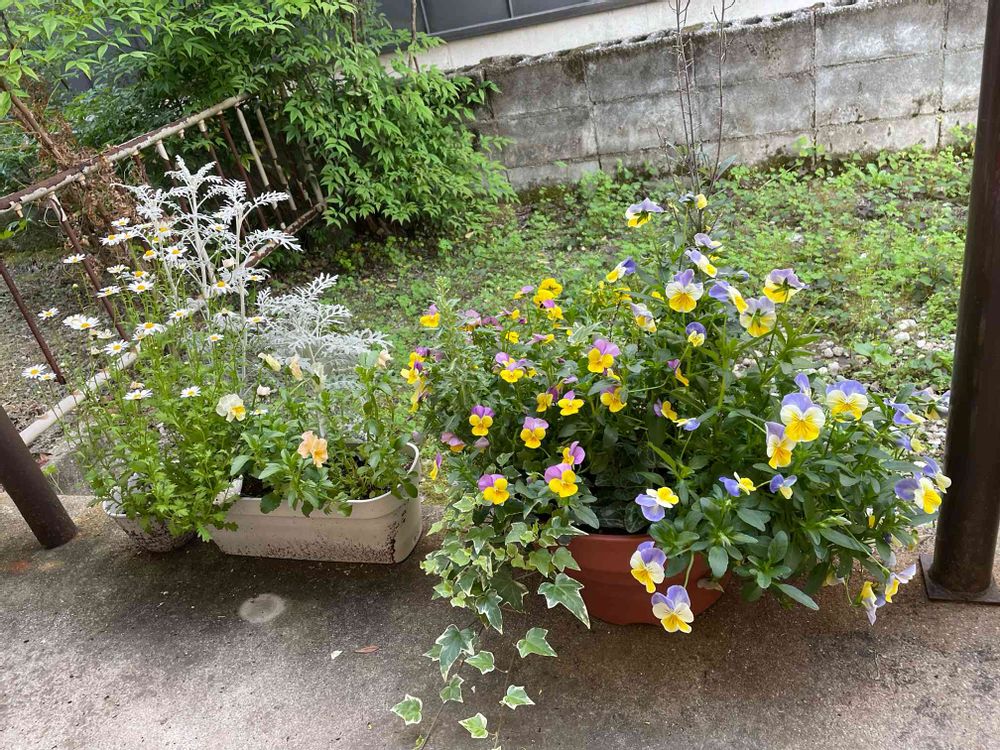今日 5/10 夕方の 我が家の寄せ植えたち🌿🌼😀