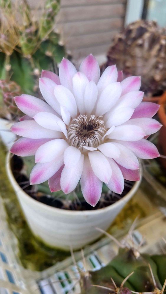 2015年にサボテンが花咲くことを知り、自分で買ってきたダイソーサボテンが次の年に咲いたのをきっかけに、どはまりしてます😅