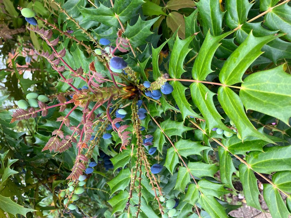 この写真は今日イギリスで撮ったのです。日本にいるなら、今の時期にひいらぎなんてんはどんな状態ですか?