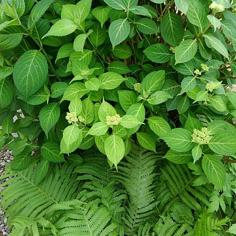 ヤマアジサイの開花まではしばらくグリーン一色のコーナー。それもまた善きかな✨