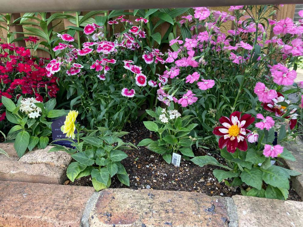 撫子3種、ダリア(スターシスター)2種と白いペンタス。