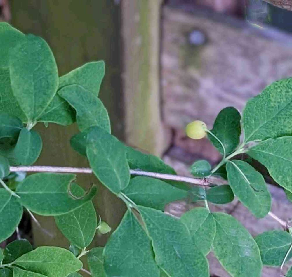 昨日 アプローチの白花鶯神楽に可愛い実が出来ていました