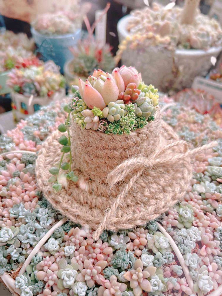 ちょこんとのった帽子にも多肉ちゃん🥰