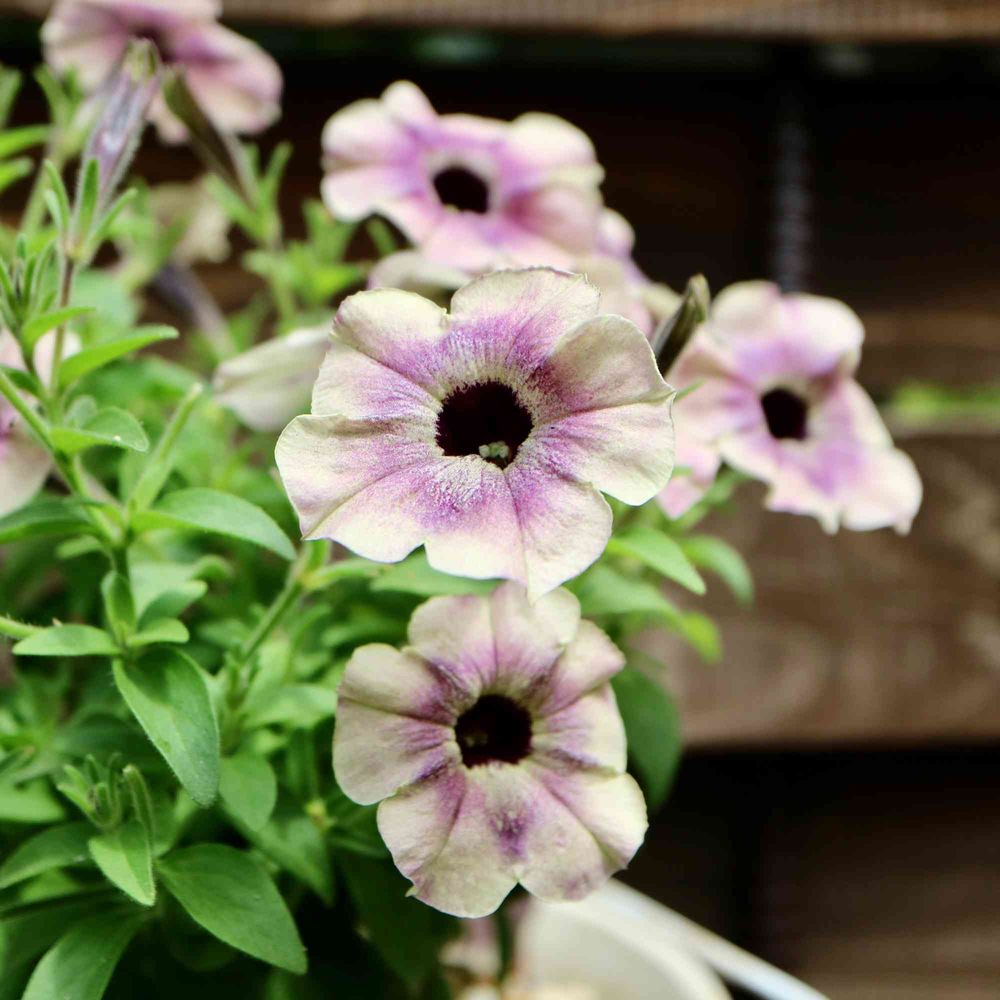 濃淡のある紫色と花の中心部にある白いリングが特徴的。