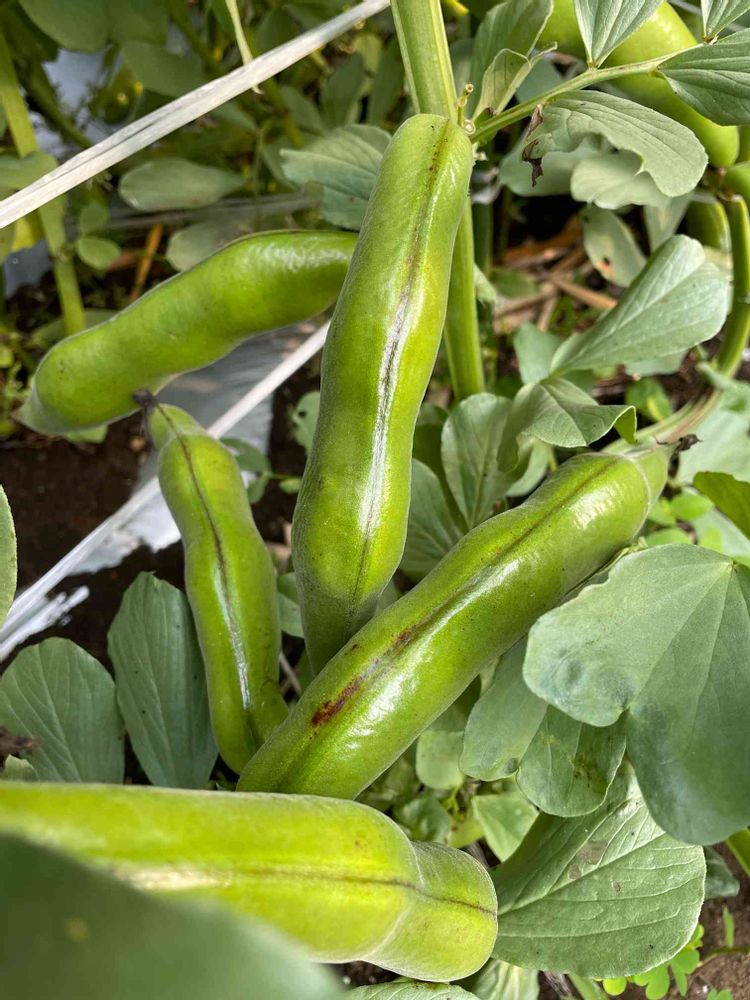 昨日に続きツマミシリーズ😆そら豆の背筋が黒くなって来たのでそろそろ収穫です😌鶏糞使った土作りが良かったのか今年のそら豆は例年よりデカく育ちました😊