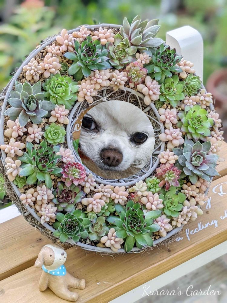 クララちゃんリースの真ん中からこんにちはだね👋🐶