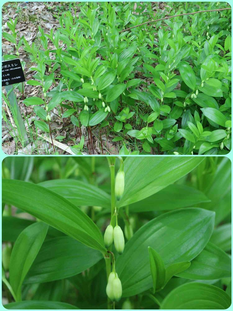 ヒメイズイ(姫萎蕤)キジカクシ科アマドコロ属の多年草。別名ヒメアマドコロ。地域の里山を再現したエリアの展示物です。名札が立っていました。丸コユリ、角ドコロの仲間ですネット〜。ヘ〜こんな娘がいるんだ〜。